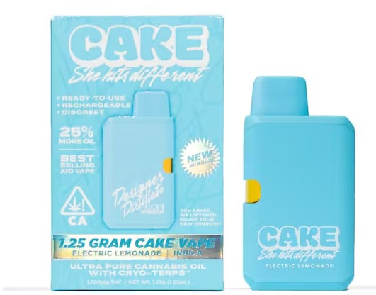 CAKE She Hit Different Electric Lemonade • Designer Indica Disposable Vape • Distillate Vape 1.25G • Lemon Skunk × Grape Pie Vape • Citrus Indica Vape • CAKE Disposable Vape • Electric Lemonade Cannabis Vape • Releaf Cannabis Dispensary
